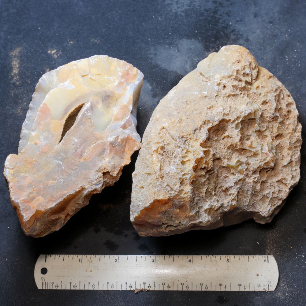 Brazilian agate nodules acquired from a collector who bought them years ago.