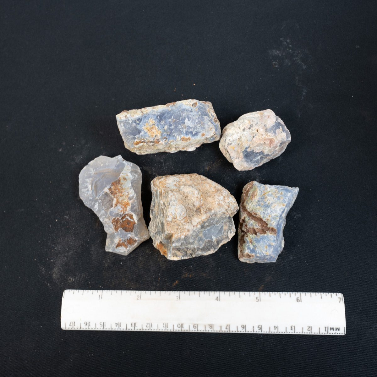 Ethiopian blue agate weighing a combined 1 pound. Would make excellent cabbing material or nice agate specimens.