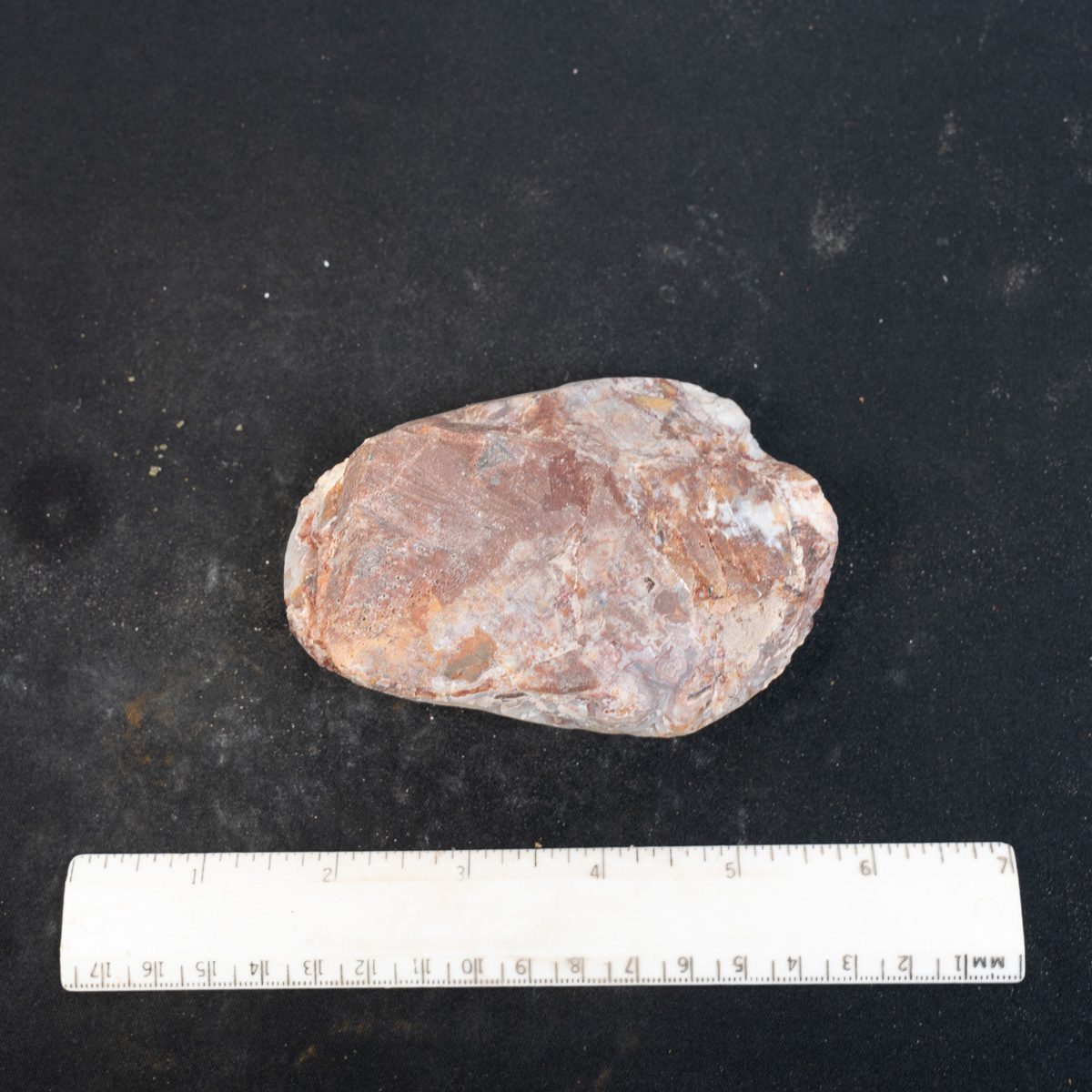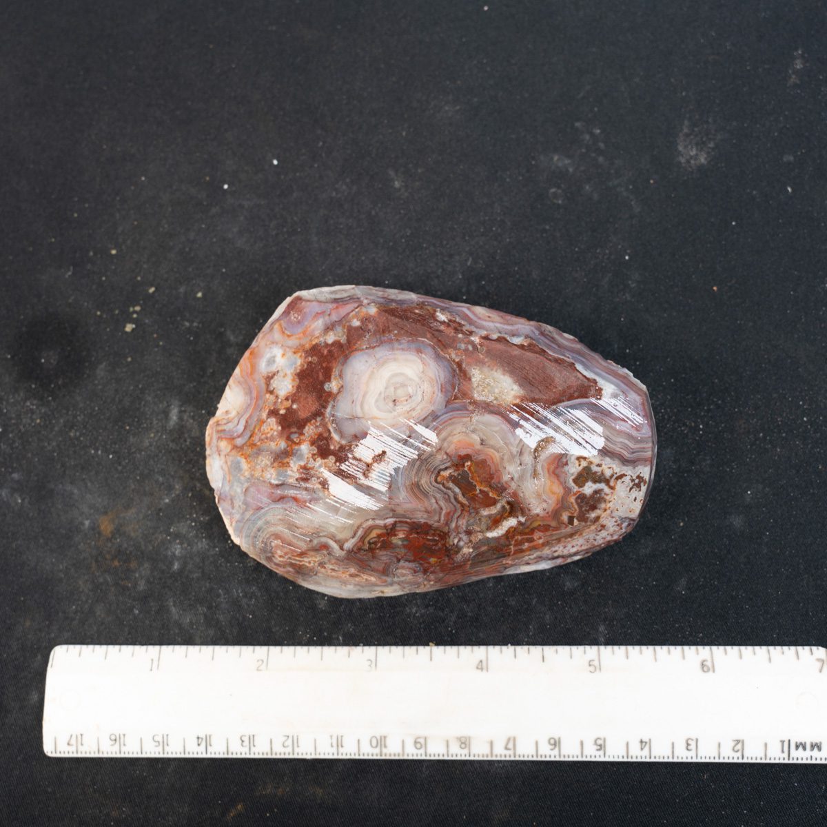 This is a crazy lace agate specimen from Mexico. The botryoidal protrusions have been ground to reveal the beautiful eyes. It is ready to place in your tumbler to produce an exceptional specimen. It is pictured wet and dry and back.