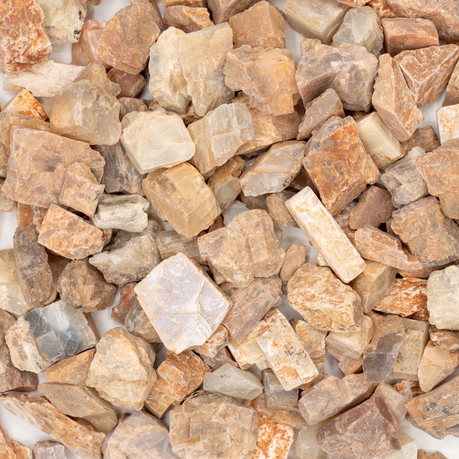 Moonstone from India for tumbling. Smaller sized material. Pictures are representative of the material you will receive.